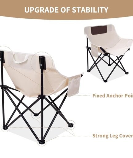 Folding Moon Chair Camping Chair with Side Pocket Portable Lightweight Foldable Backpacking Chair Ultra Durable Outdoor Hiking Beach Travel with Carrying Bag (Black)