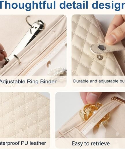 • Travel Jewelry Organizer Case, Foldable Jewelry Bags Jewelry Storage Book Ring Binder with Clear Zipper Velvet Pouch Bag for Traveling,Rings,Necklace,Earrings,Bracelets,Brooches