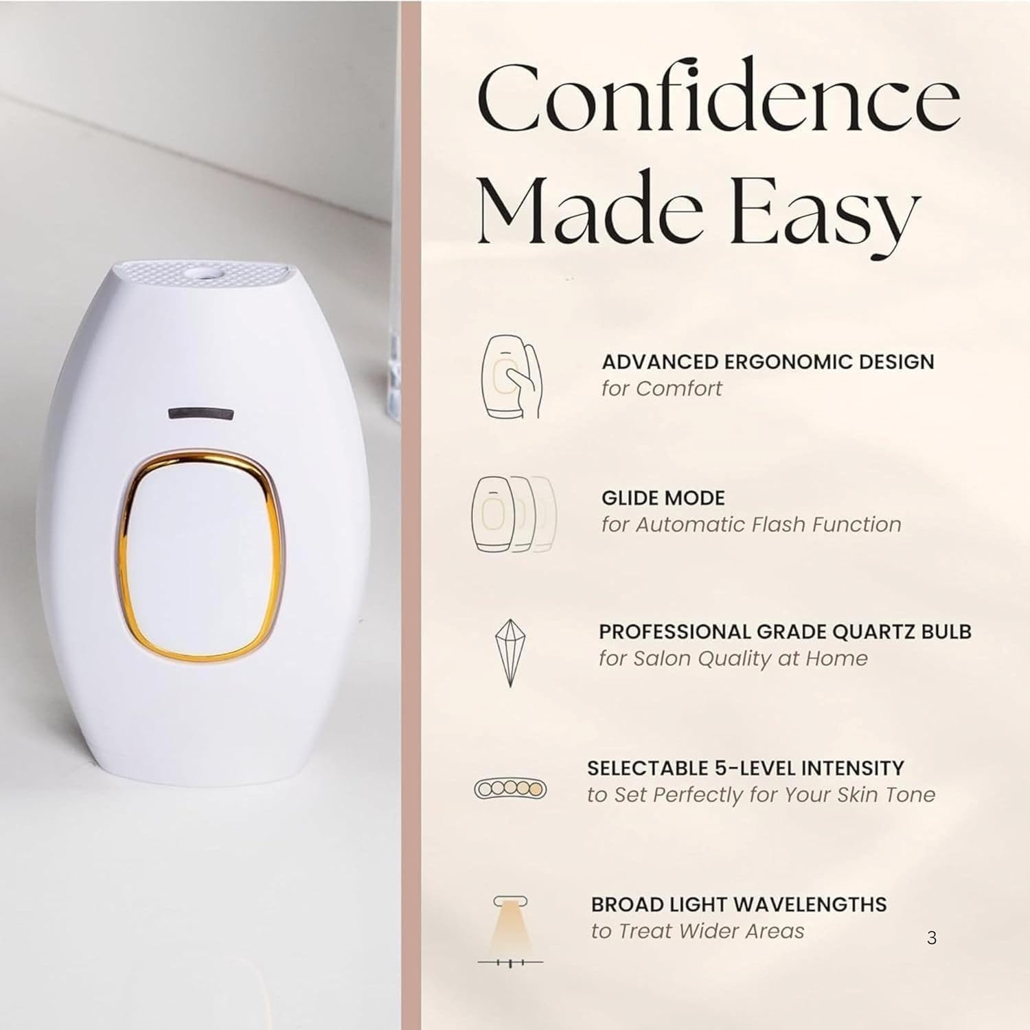 - Works for Everyone: Works for all skin tones & hair colors. Never make a hair removal appointment again